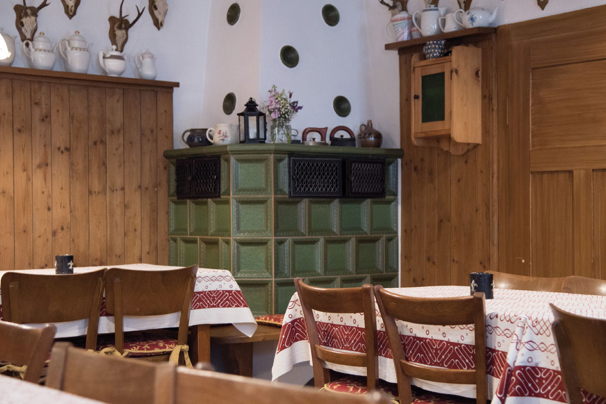 Die urige Johannstub’n schafft mit der Holzvertäfelung, den Sammlerstücken der Wirtsleute und den Zeichnungen des Anwesens eine stimmungsvolle Atmosphäre. In der kalten Jahreszeit erwartet Sie der Kachelofen mit wohltuender Wärme. In der Johannstub’n kann man es sich bei kleineren Familienfeiern oder Versammlungen gemütlich machen und ungestört unter sich bleiben. Der Raum bewirtet Gesellschaften bis zu 30 Personen.